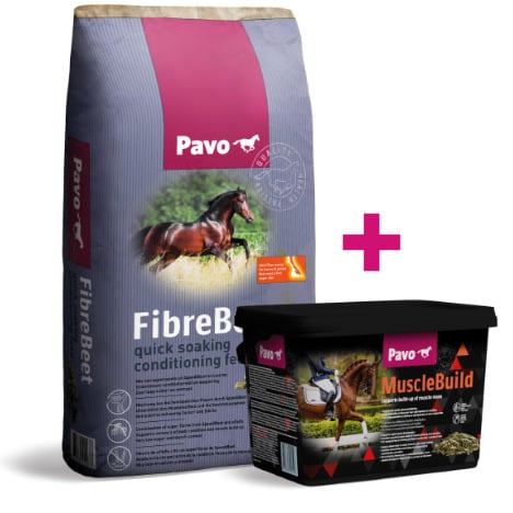 De combinatie van PAVO Fibrebeet met PAVO Musclebuild is een perfecte combinatie om je paard gespierd en goed in conditie te krijgen.